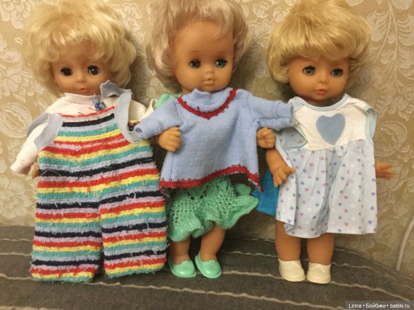 А это показываем родные наряды, только у Sonni потерялись штанишки, они были в тон кофточке