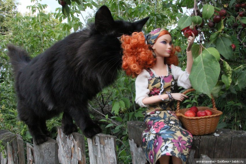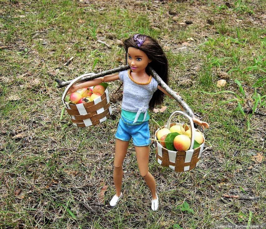Очень классное фото, вот прям верю что она сама идёт по-настоящему с яблоками.