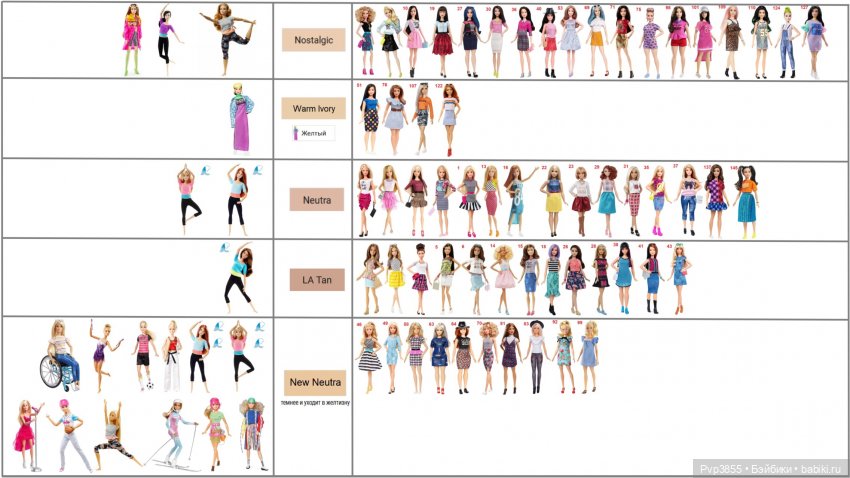 Подскажите, кто из пухляшек идентична Кену БМР пучку? Завелась у меня девочка с синдромом, поприкладывала к своим. В принципе не очень критичный разнотон с пухляшей, которая здесь обозначена «в цветных», но с Кеном пучком прям почти идеальное совпадение. Чьё тело мне теперь искать-то?