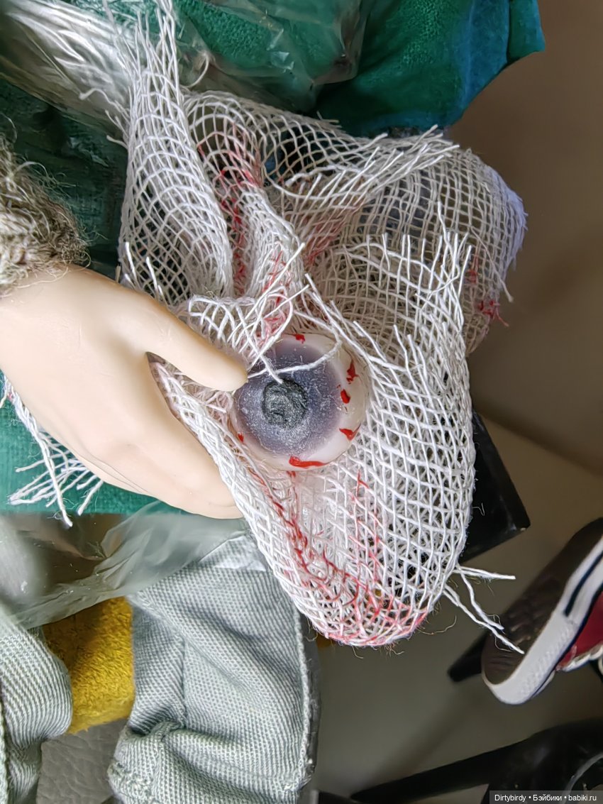 Юля, он сейчас глаза выплюнет! Сделай дырку в бинтах