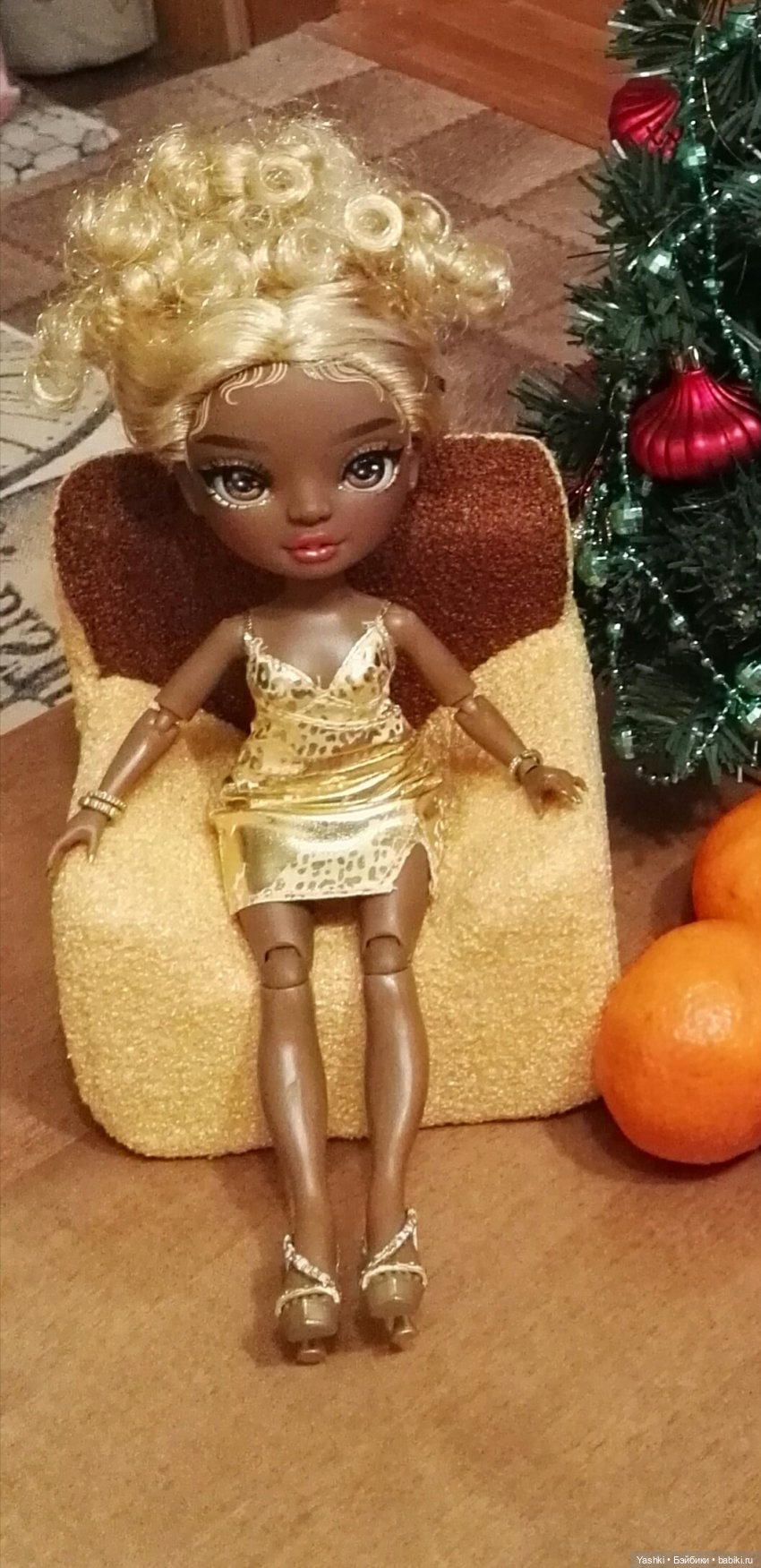 Соня ( там сплошное золото. Туфли, платье, украшения, волосы тоже золотистые)