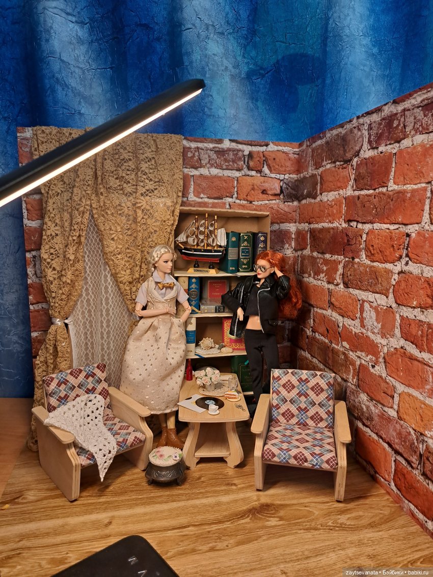 Ну а вашей покорной слуге пришлось битых три дня шить, клеить, обставлять декорации и наконец фотографировать всю получившуюся картину.