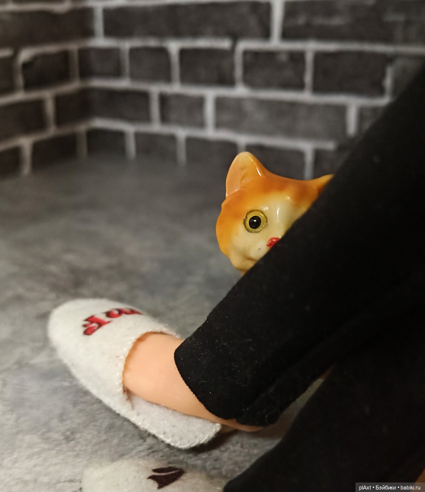 Котик явно присматривается к тапкам, чтобы нахулиганить))