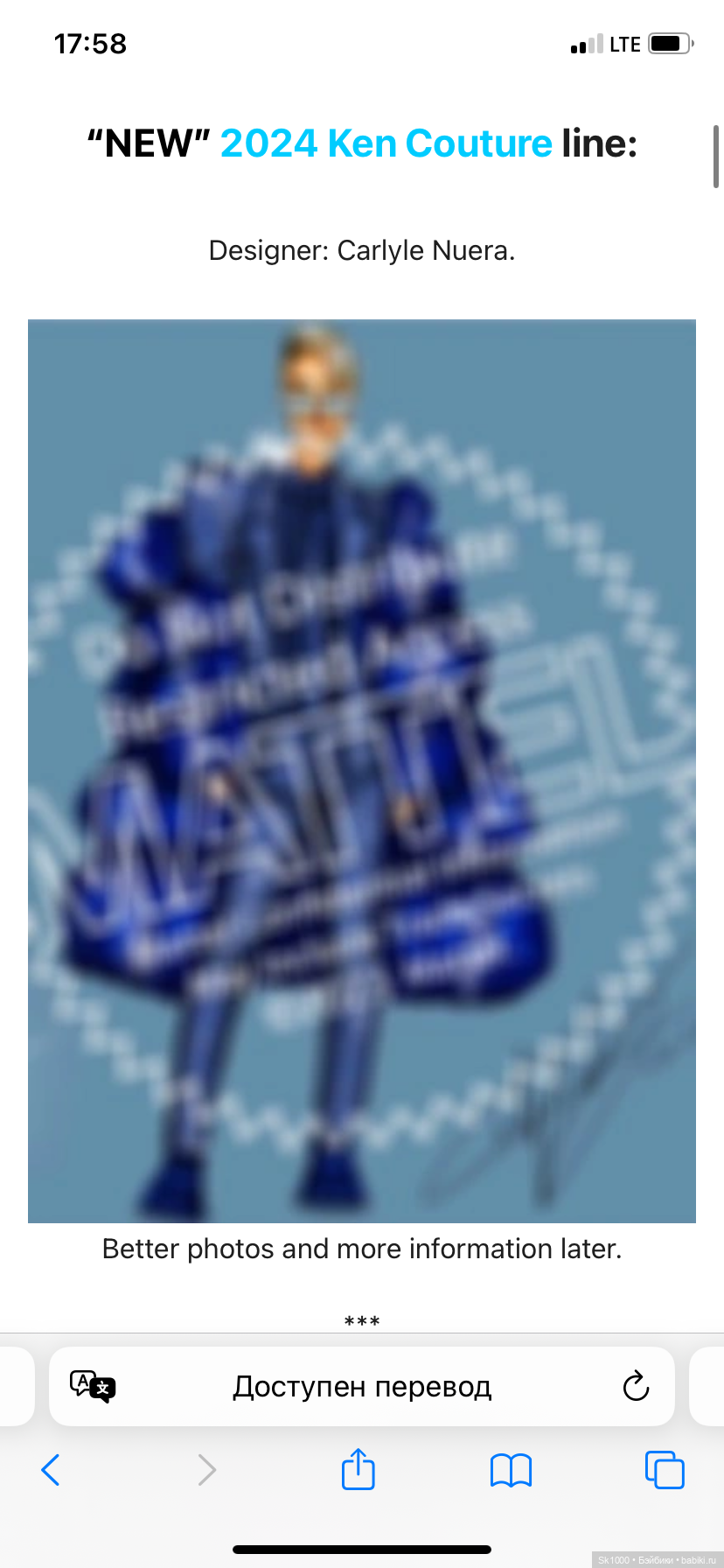 А еще интересно, что за Кен в синем кутюр авансируется Маттел?!