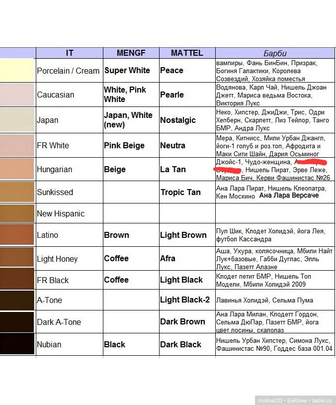 Добавлю табличку сравнение скинтонов, от Оли molina033, может кому-нибудь пригодится!🤗