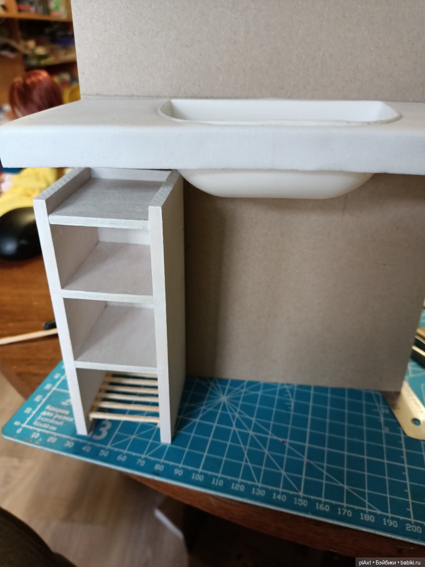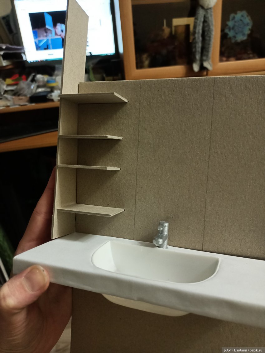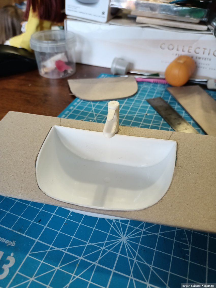 Раковина — это отрезанная секция от органайзера в виде ванночки из ФП, когда-то покупала.