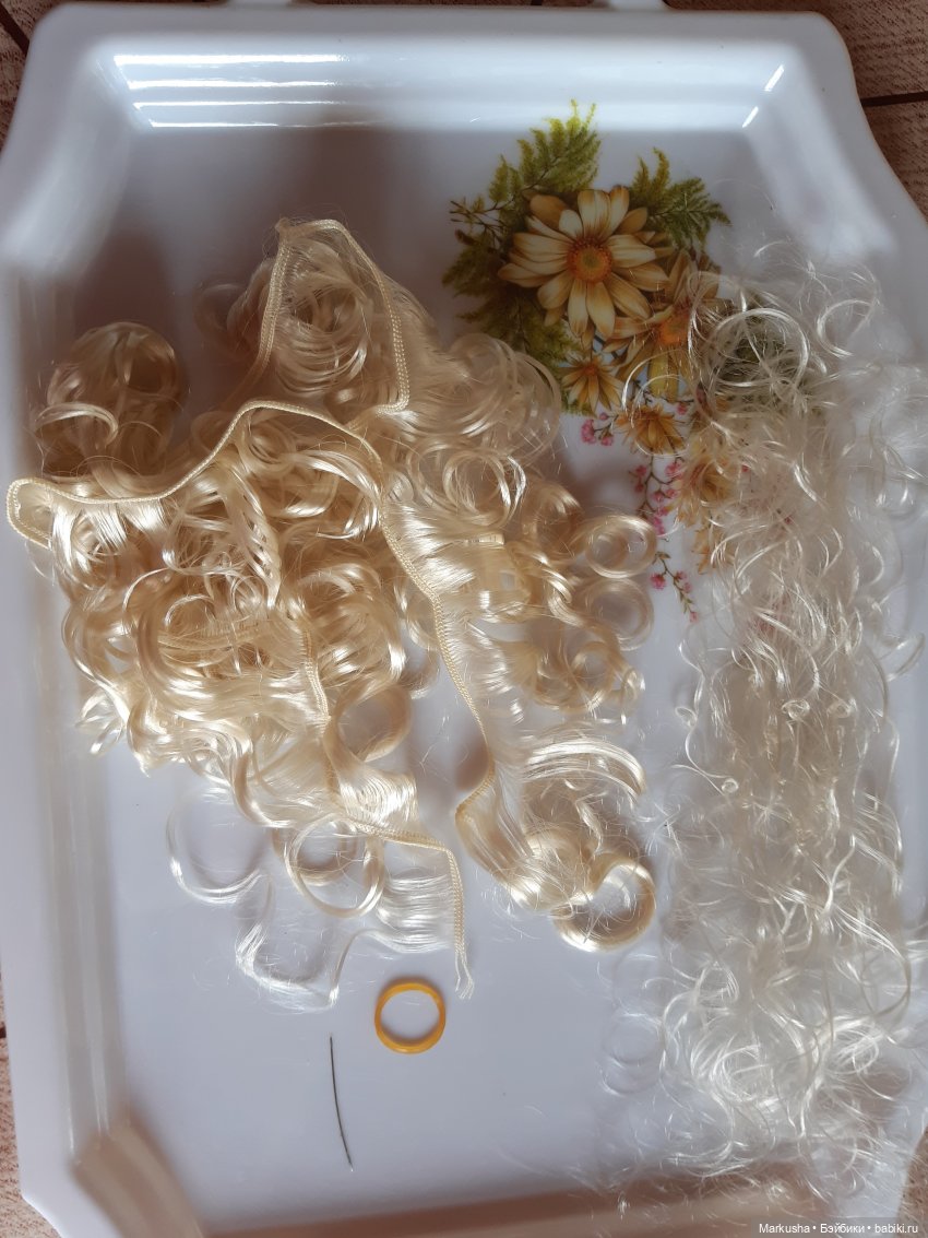 Я использовала мохер. Многие любят саран, но у меня с ним не сложилось. Он тяжелее накручивается и хуже держит завивку. А этот мохер мягенький, шелковистый и цвет прям совпал.