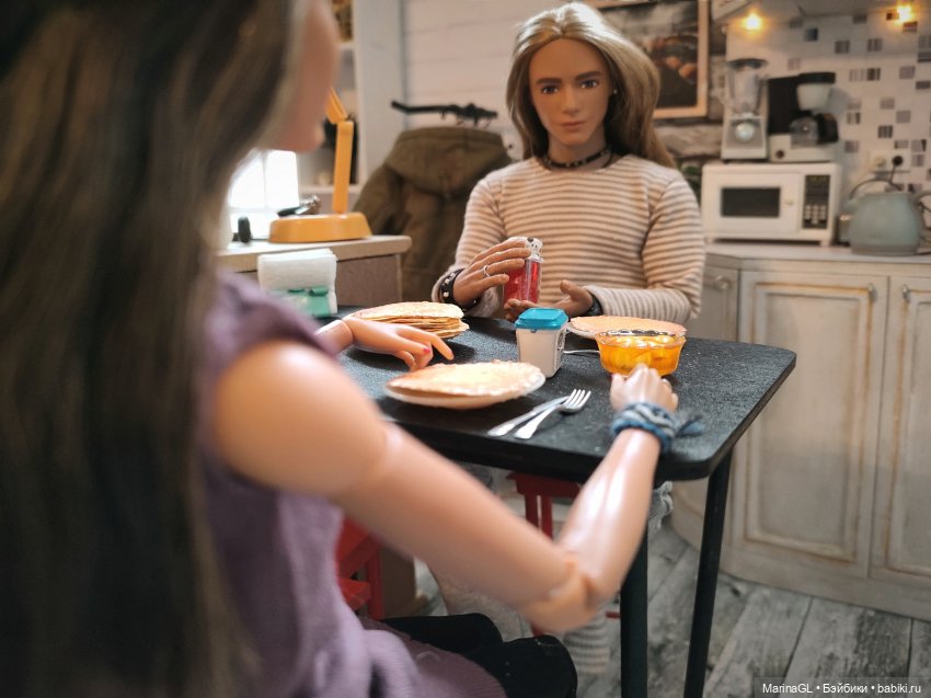 У меня их квартирка стационарная. Обычно все тусят у Егора на кухне) поэтому миниатюру не убираю. Кто с чаем сидит, кто с бутером, кто отрабатывает гостеприимство и посуду моет)