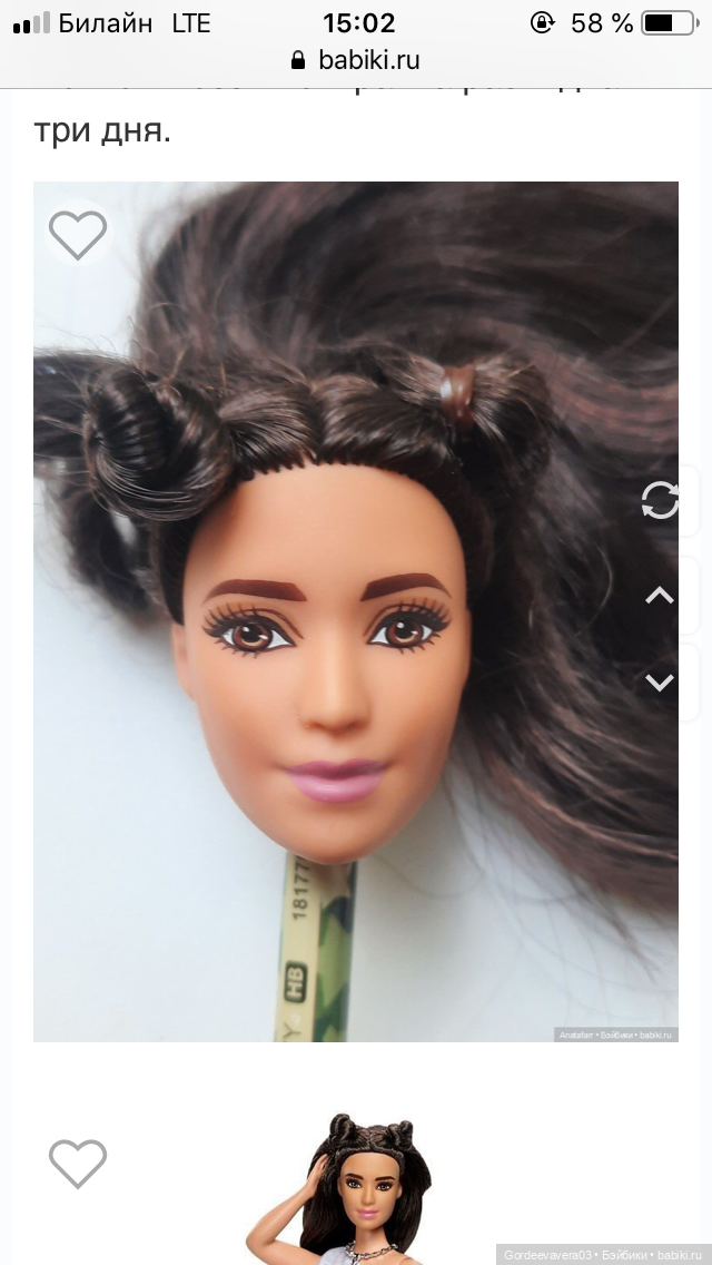 Сразу после распаковки куклы, волосы были еще чуть волнистые: