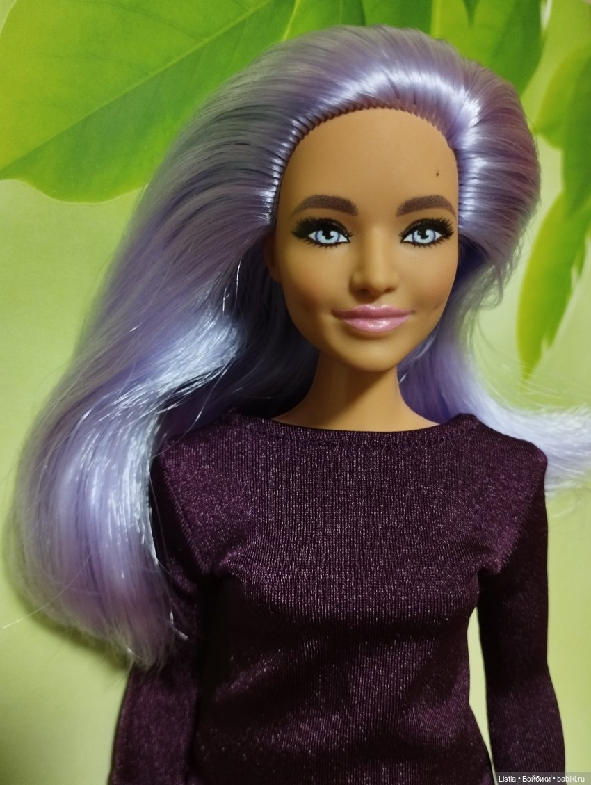 С нее началась моя горячая любовь к куклам линейки фашионистас. Она очень понравилась мне на личико и конечно меня привлекла ее необычная внешность: сиреневого цвета волосы и светло-голубые с сиреневым отливом глаза.