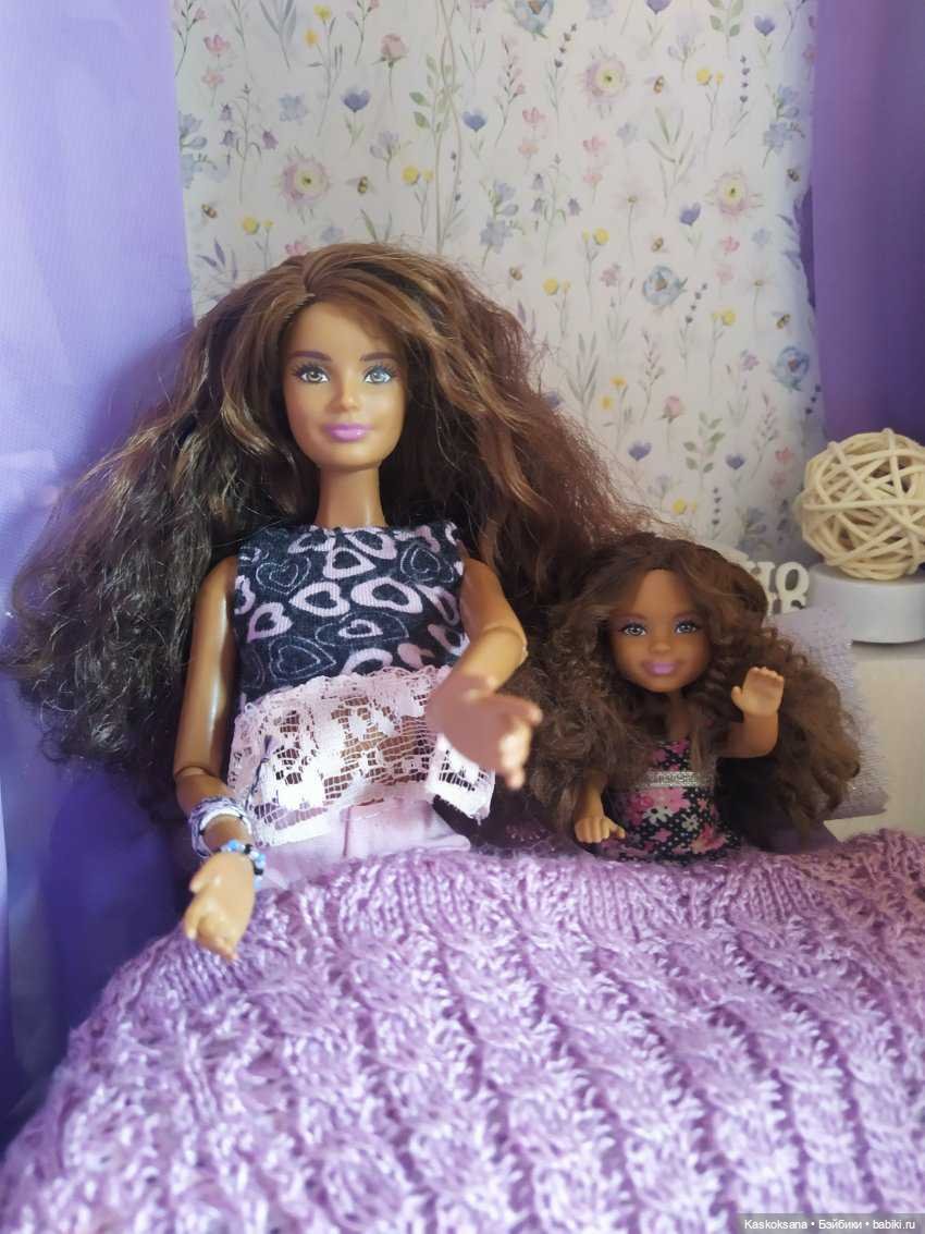 У меня количество Келли и её друзей-подружек давно перевалило за полсотни, но родственные связи пока были только по типу брат-сестра, потому как взрослых кукол в коллекции нет. Но сейчас как раз ждём приезда одной взрослой куколки, думаю определить её в мамы вот к этой малышке: