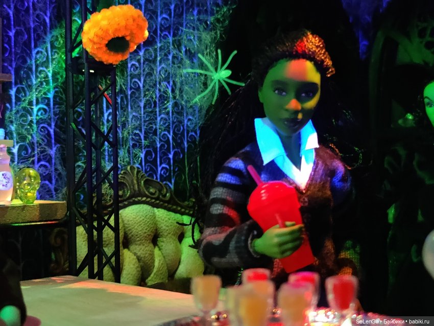 Справа за барной стойкой стояла абсолютно зеленая девушка с алым напитком («одни красители» пронеслось в голове у Гогги).