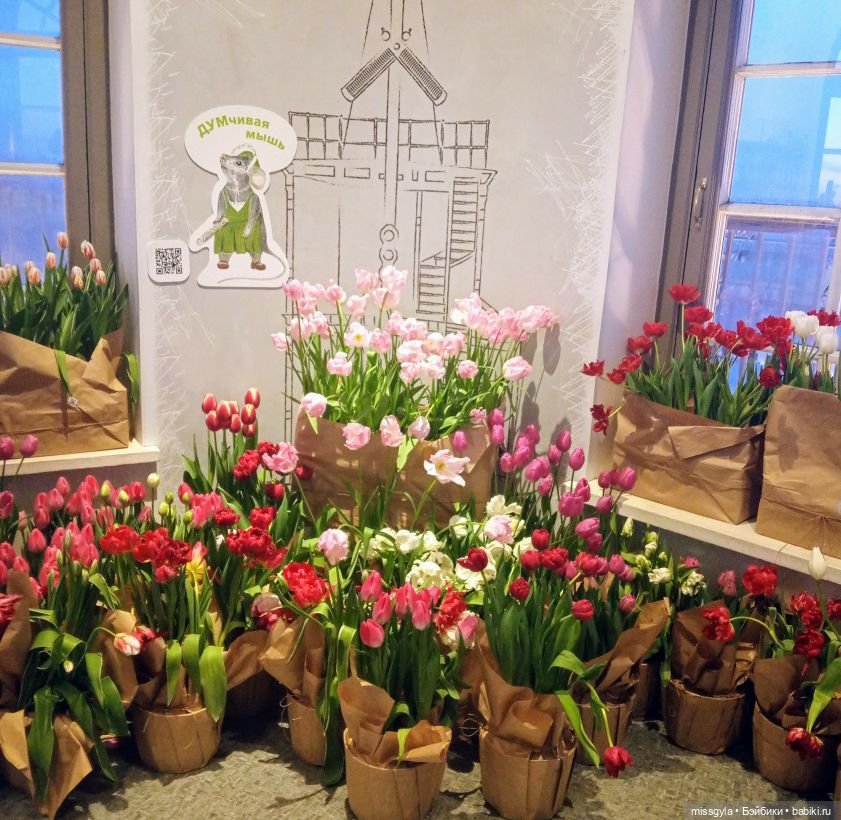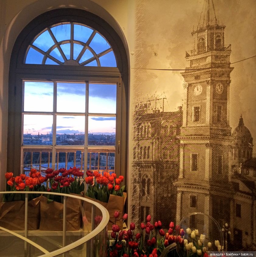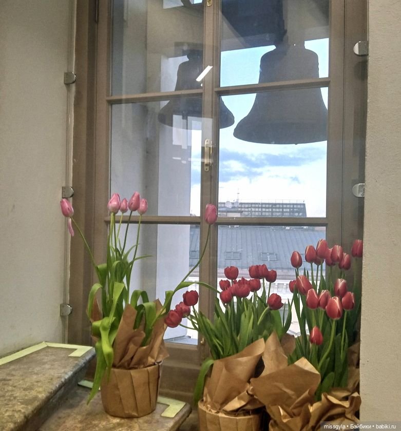 Джина случайно узнала, что в Думской башне проводится выставка тюльпанов и, конечно, загорелась идеей — объединить восхождение на смотровую площадку с лицезрением красоты.