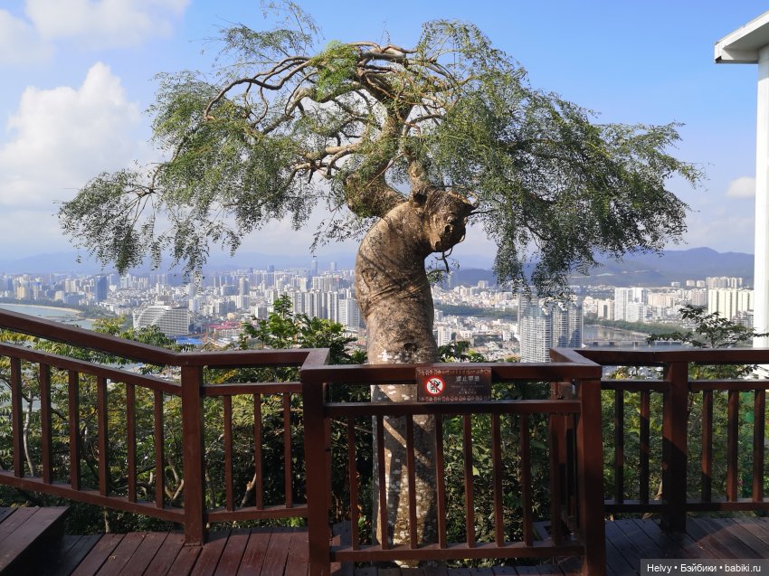 Парк находится на самой вершине горы, откуда открываются потрясающие виды на город Санья и море.