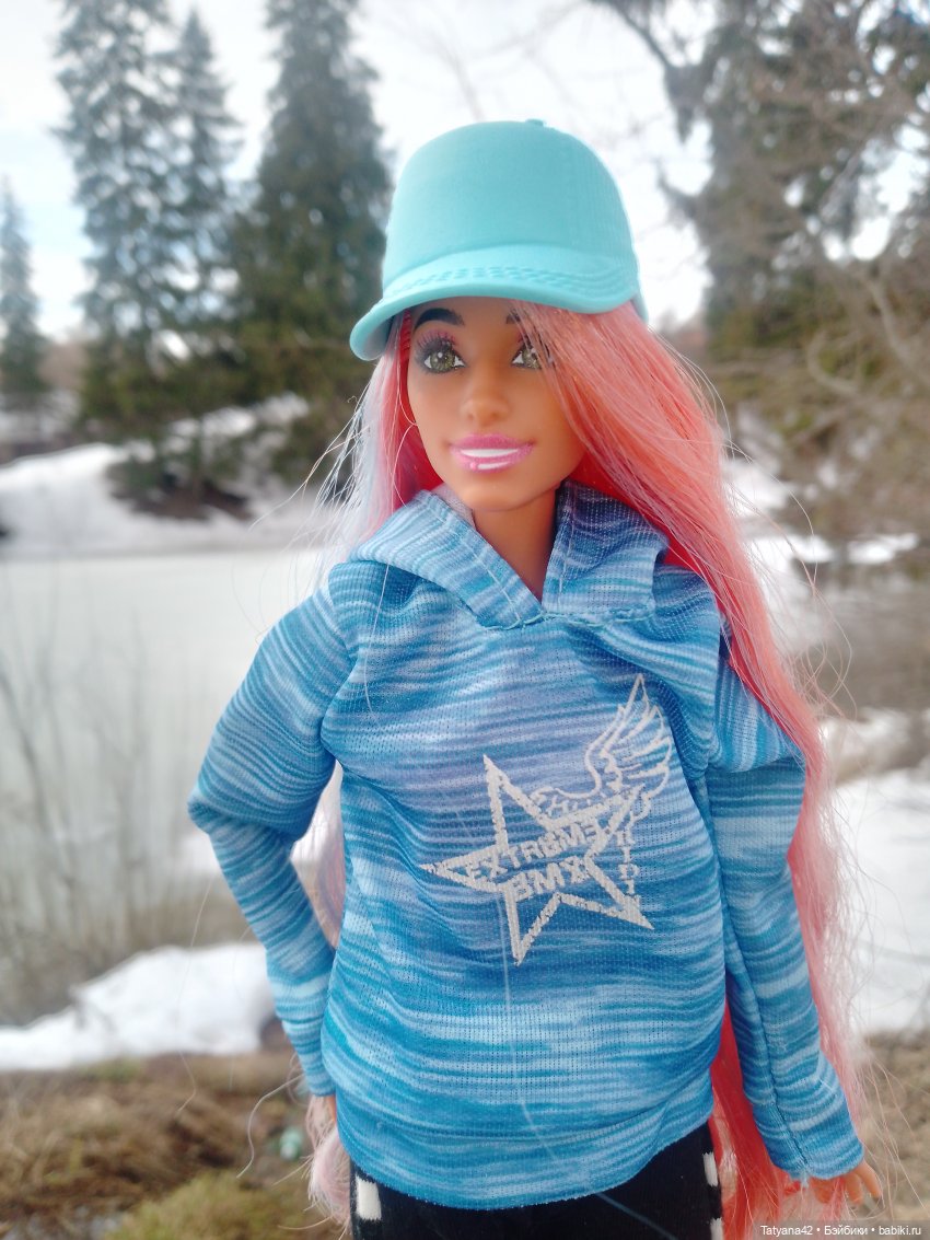 Прогулялась со своей красоткой. На мой взгляд, очень интересная леди. У неё не стандартная внешность: достаточно выдающийся нос и красивая улыбка 🩷 От низкой температуры воздуха на лице проявляются синие звезды. Изначально у куклы были яркие волосы, но я перепрошила как мне нравится. Покупала ее не глядя (она же в стакане запакована🤭), поэтому есть ещё особенность на лице — точка под губой, которую я не смогла убрать, ну и ладно☺️ Мы с ней и так подружились 🫶 Вам нравятся барби из серии pop reveal?