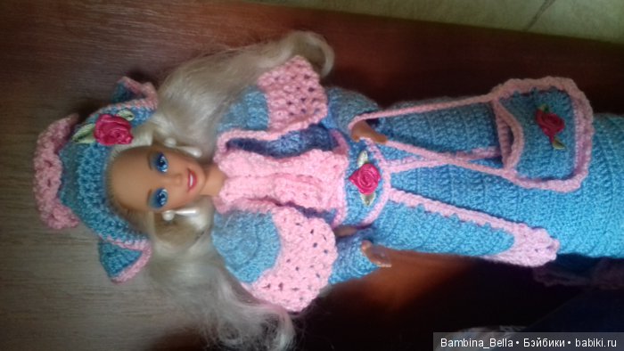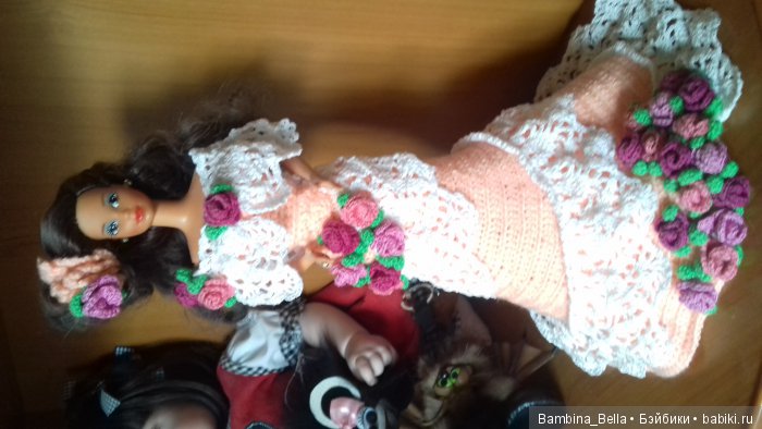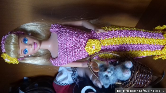 На роль мамы была выбрана Барби, улыбающаяся с закрытым ртом. У нее платье со стикерами, но сейчас его не найду. Одела ее в обычное платьице.