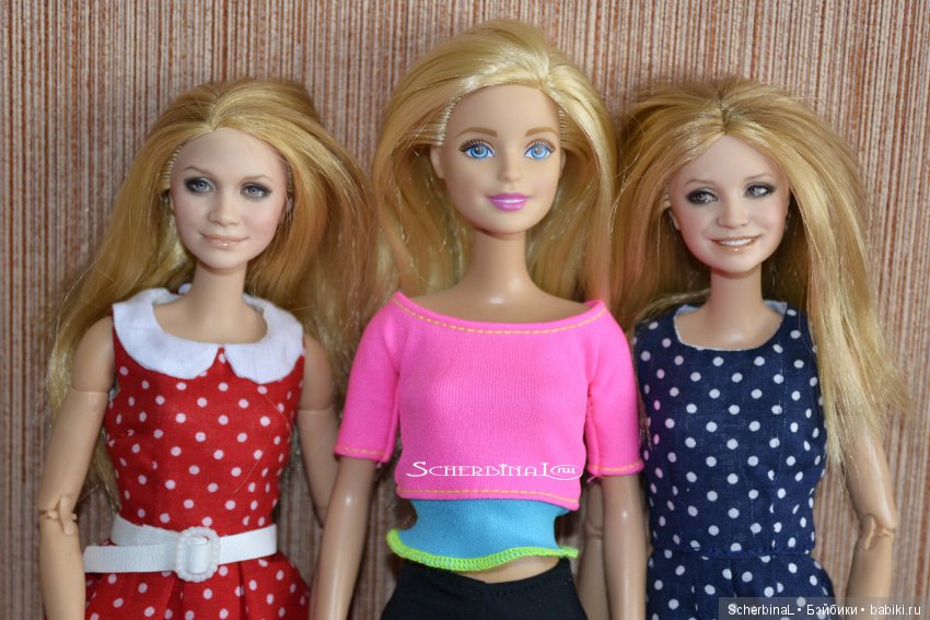 Отпустило конечно давно, но ваши девочки очень понравились! Вызвали приступ не только ностальгии, но и восхищения! Живые получились, узнаваемые и очень красивые! А фэмили лук в горошек такой стильный! Особенно впечатлил комбез) Очень интересно какие еще образы вы им придумали!