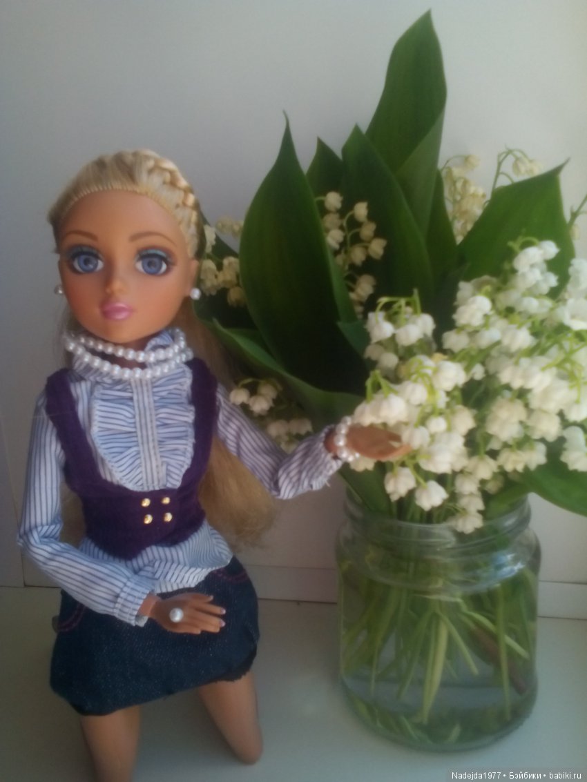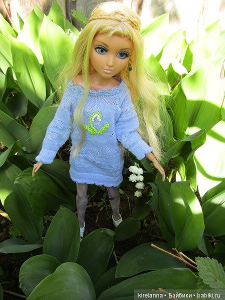 Добрый солнечный ветреный день! Дождевые облака заглянули к нам не надолго, сегодня уже убежали дальше по своим делам, и у нас опять солнце, и расцвели ландыши и купена… а самая любимая мокси тинз Линда получила простенькую обновку из носка, и по этому случаю её синие глазищи решено было выгулять в палисаднике.