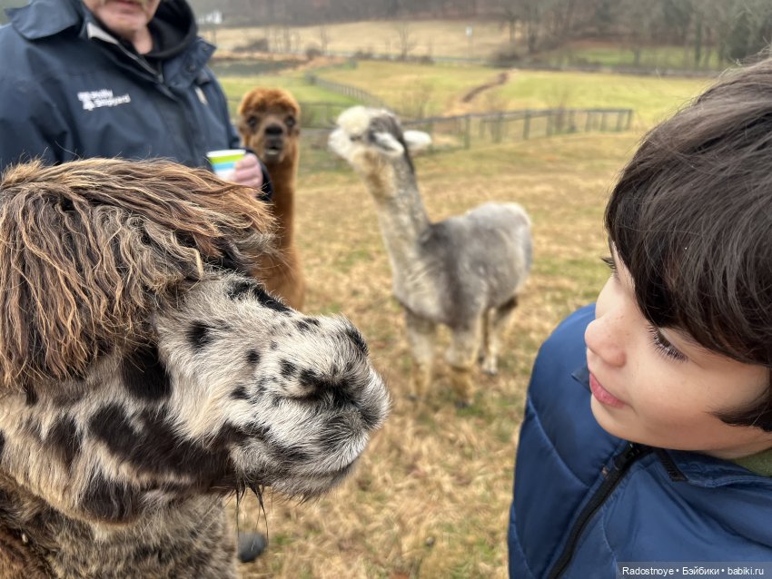 Мой сын увлекается видео игрой Minecraft. Там можно строить целое поселение из блоков. Его любимое животное в игре — лама, которую он назвал Лейла. Стали читать книги про лам и альпак — очень увлекательно! Оказывается, и у нас в Пенсильвании есть фермы, где их разводят. Стала наводить справки, и сегодня удалось посетить такую ферму!