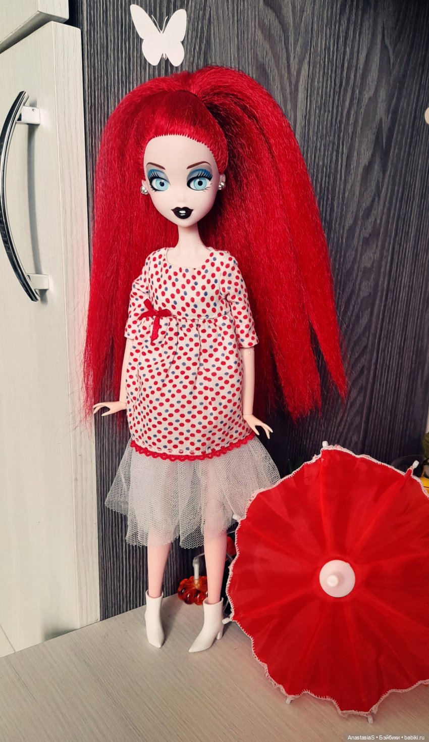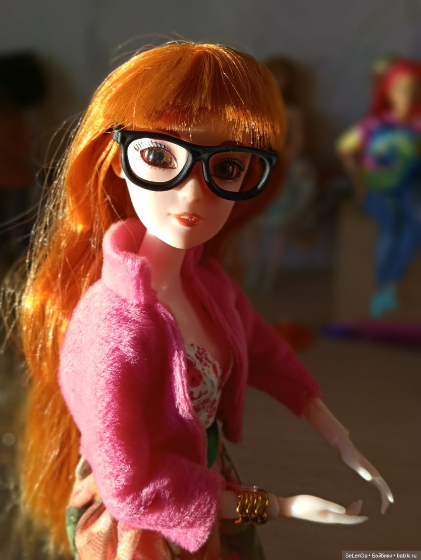 На данный момент она выглядит так. По случаю я достала её из витрины, помыла, уложила волосы и приклеила реснички, с ними она стала ещё более очаровательной. ))))