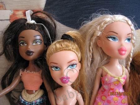 У меня, блягодаря ебею, недавно появились куколки Братц. Их довольно много, но, к сожалению, так как они покупались с рук в не новом состоянии, я не знаю их имен. Поэтому очень надеюсь на помощь в их, так сказать, опознании. Выкладываю фото и надеюсь, что вместе мы сможем определить кто есть кто.