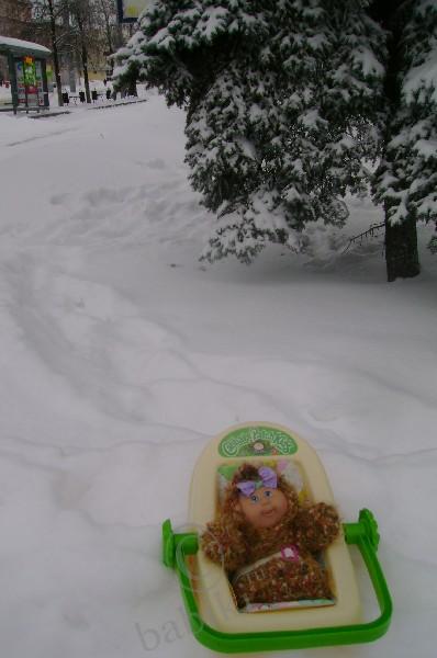 У Алисы тельце мягконабивное, как и у Вивьен, а Марьяша вся виниловая. Дочка у меня так растрогалась, чуть не плакала, когда держала их на ручках. Потом мы все вместе отправились гулять во двор, т.к. у нас никак не могла установиться весна, а тут – на тебе! — второй день почти летняя погода.