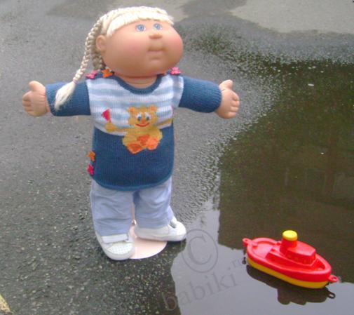 Сегодня в нашем мегаполисе, задыхающемся от жары, прошла гроза. Вивьен сразу же побежала пускать кораблики в лужах, заодно и новый вязаный свитерок продемонстрировать.