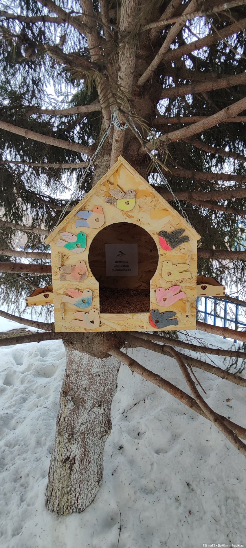 И такая кормушка кем-то из школьников была создана для пернатых.