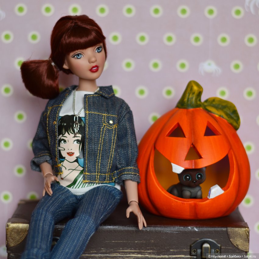 «Странная Эмили» живет у меня уже очень давно (года эдак с 2010). И я незаслуженно мало внимания уделяю этой крутой и харизматичной кукле. Вот решила сфотографировать ее с тыквой к празднику :)