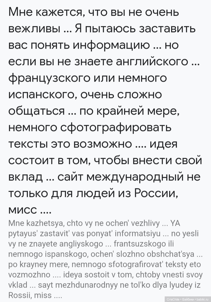 Je ne discute pas, cela peut sembler impoli. Mais! Je lis et joue sur le site, mais je ne pense pas dans quelle langue formuler une pensée. Tout de même, le site est en russe. Et il m'est très difficile de passer constamment au traducteur sur mon téléphone. Si ce n'est pas un problème pour vous, alors bienvenue, Chris!