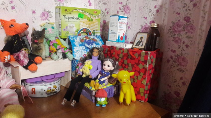 – С детских годов осталось достаточно кукол, но к ним у меня совершенно пусто. Отдавать детям, которые сломают не хочется. Для других ценности не будет, они не какие-то редкие. Но и среди них есть избранные. Так что кукольные жители разделились на несколько лагерей. Первый детские воспоминания живущие отдельно, вторые различные фигурки навроде свит бокс и киндеров, которыми тоже дорожу. И третья группа сейчашняя моя вроде как коллекция. Объединять не рискую, так как заметила, что слишком большое количество на меня жмёт психологически. Комфортнее вроде когда мало но по настоящему интересные как сейчас и с уютом. В коллекции у меня любимая фигурка Ам-няма(очень много с ней воспоминаний, любимчик), баболи Яна(она стала первой кого я восприняла как мой вход в куклохобби, сначала мне казалось что она не то что я хотела, но со временем мы так сдружились, что теперь даже когда я долго не беру её в руки то начинаю скучать по ней), Барби лукс Лина(была моей огромной мечтой, которая исполнилась благодаря очень хорошему человеку. Я столько ей образов напридумывала, пока мечтала, сейчас пытаюсь воплощать, но медленно всё идёт), 2 самодельные игрушки амигуруми Зайка(его я делала в подарок но судьба распорядилась иначе и я безумно рада что он остался со мной! Столько в этого зайку было вложено моих счастливых эмоций, что он меня греет. Тому человеку был связан и подарен другой заяц не так давно) и Лиса (ею я загорелась, но она оказалась самодостаточная, поэтому во время создания мы очень много общались и я к ней тоже пропиталась эмоциями). Вот такая уютная компания.