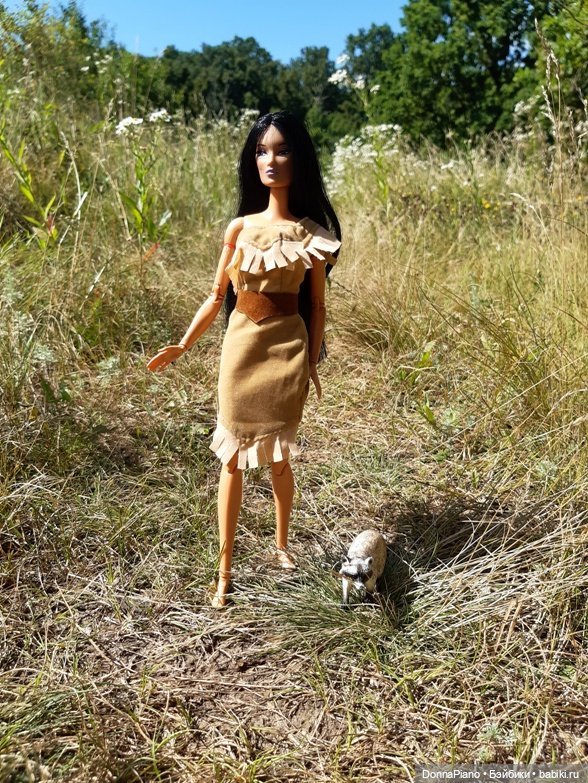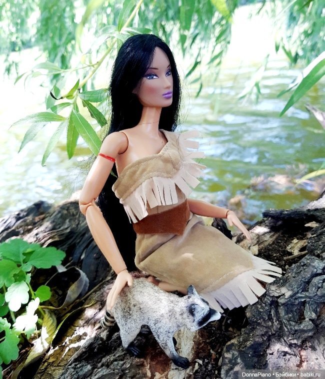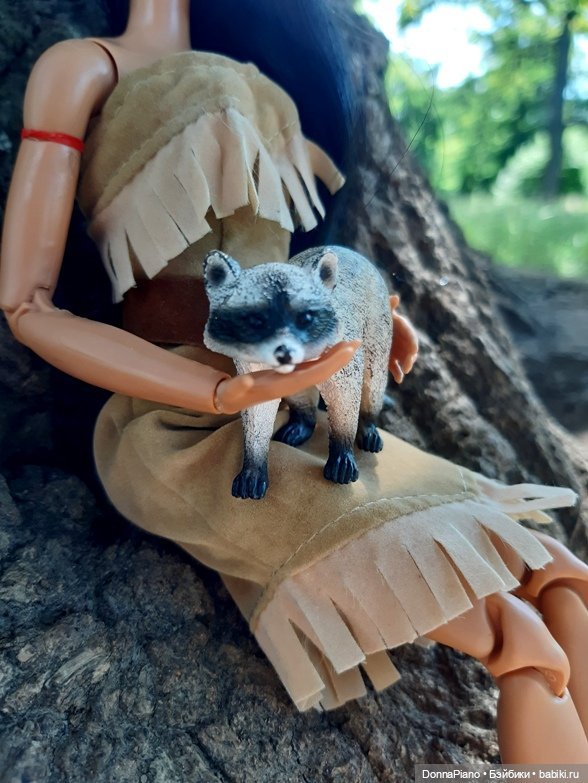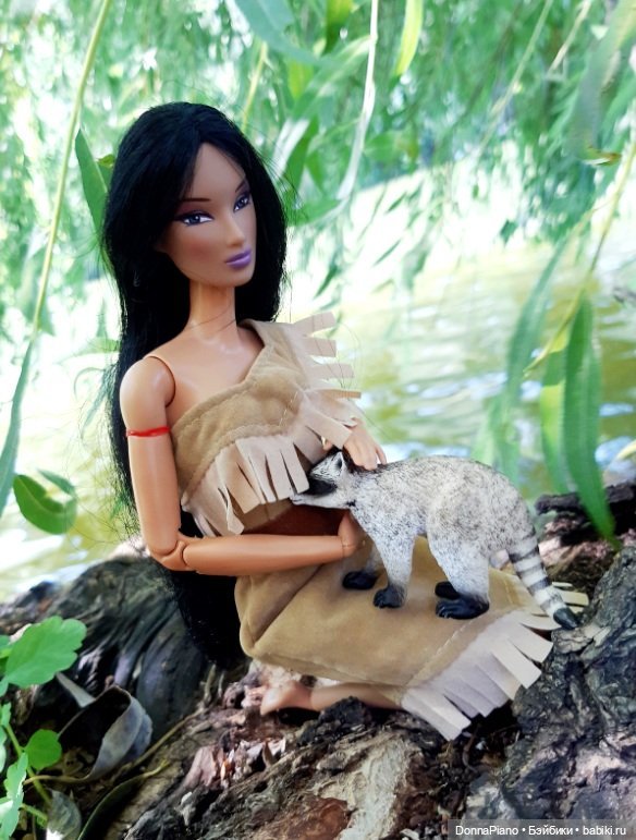Когда у меня появилась Луна, я сразу поняла, что она очень похожа на Покахонтас. Для меня она идеально вписывается в этот образ! Оставалось только раздобыть то самое платье… И енот, который у меня был давно, как раз дождался своего часа :))