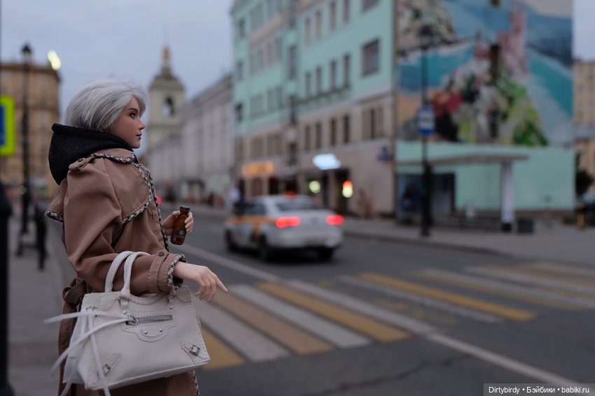 Ну, на улице у меня фото тоже не всегда получаются вообще, это дома я всё могу по учебнику, с перерывами и по стотыщраз переделывать, а на улице — поставил куклу, быстро делаешь фотки и бежишь, пока не догнали.