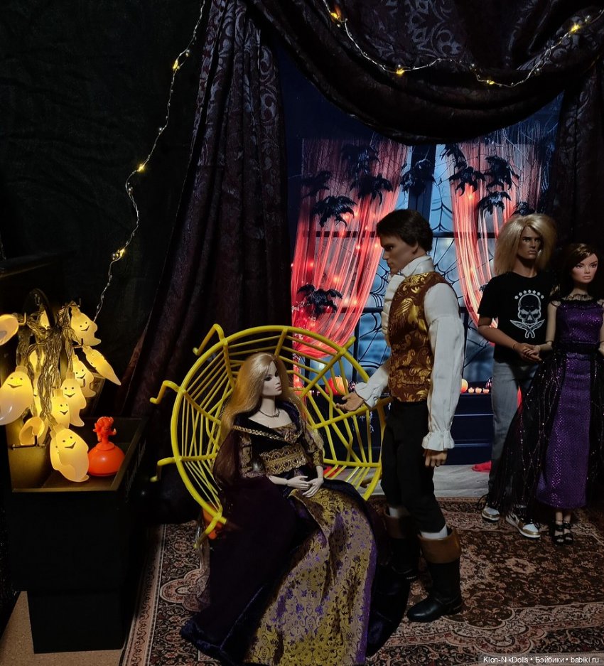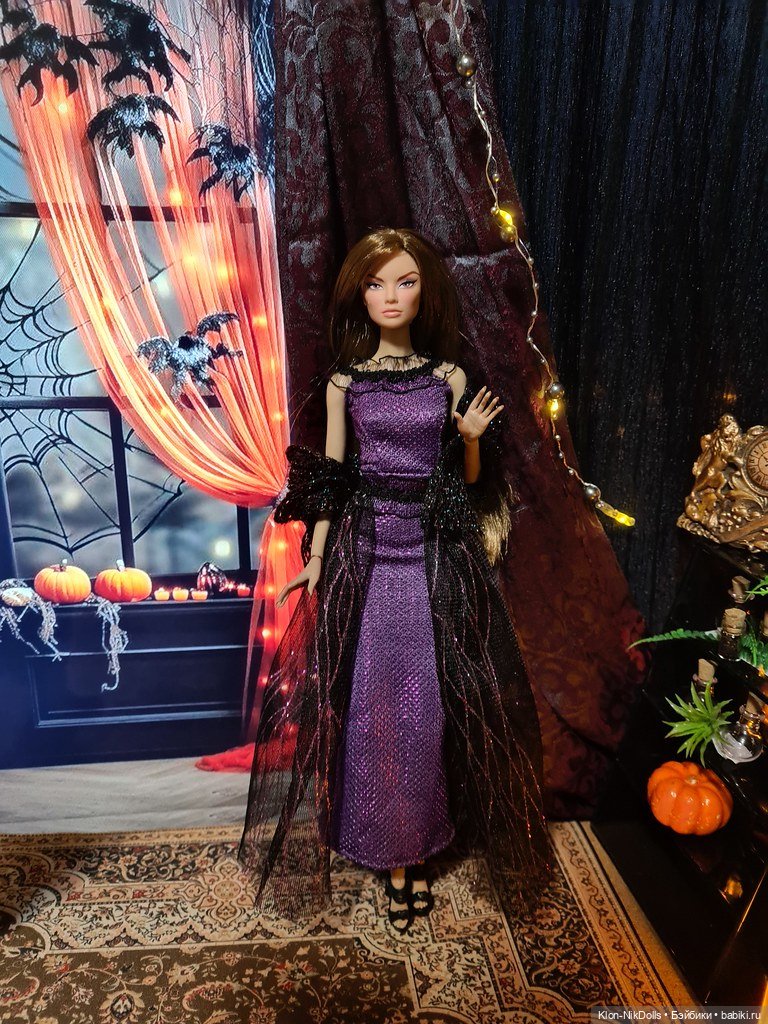 Для большей гармонии я включила подсветку кольцевыми лампами и меня опять унесло в какое-то фиолетовое безумие. 🤭 Но после красно-чёрной гаммы фиолетовый — это мой любимый цвет, а в последнее время он вообще вытесняет другие мои любимые цвета. Фото с Беатричче всегда получаются какими-то магическими, просто берёшь эту куклу, ставишь в декорации — и случается магия. ✨