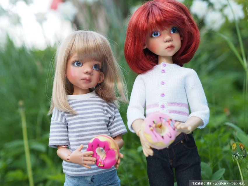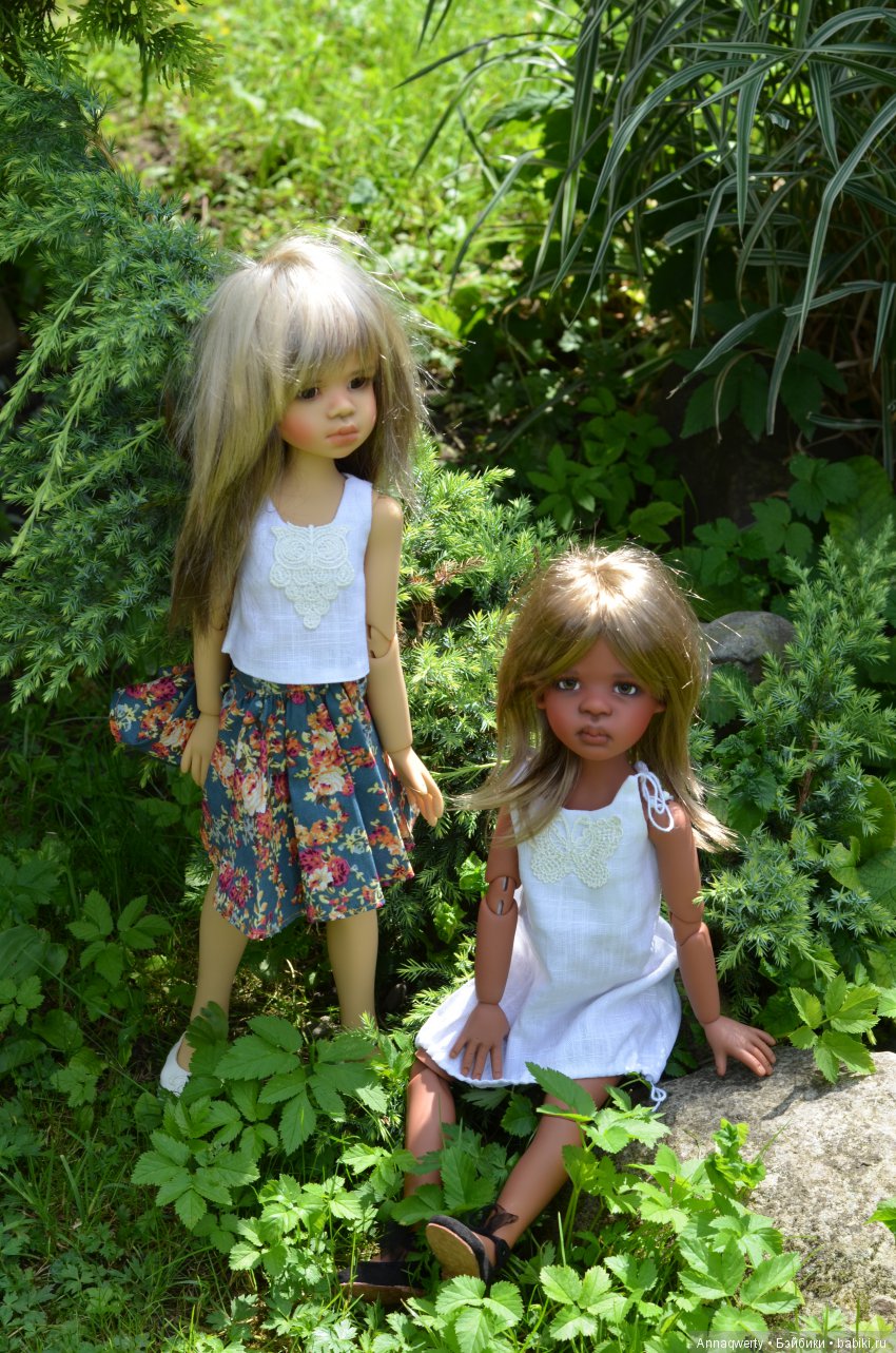 Наконец-то я сделала фото своих девочек в новых паричках и одежде от Леночки.