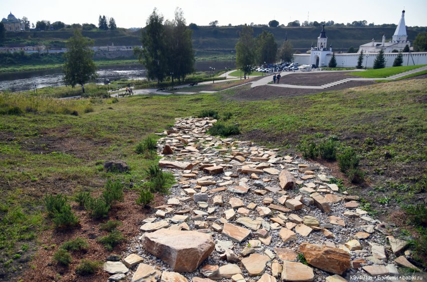 Да, похоже на природный рисунок. Ездила в Старицу (наверное год там не была) и была «шокирована», как там всё преобразилось. Эти камни откуда-то привезли и сделали что-то по типу горной реки. Сейчас пока воды нет. Камни как «хамелеоны» на солнышке мерцают и переливаются разными цветами. Не знаю, что за порода камней, но очень впечатляют!