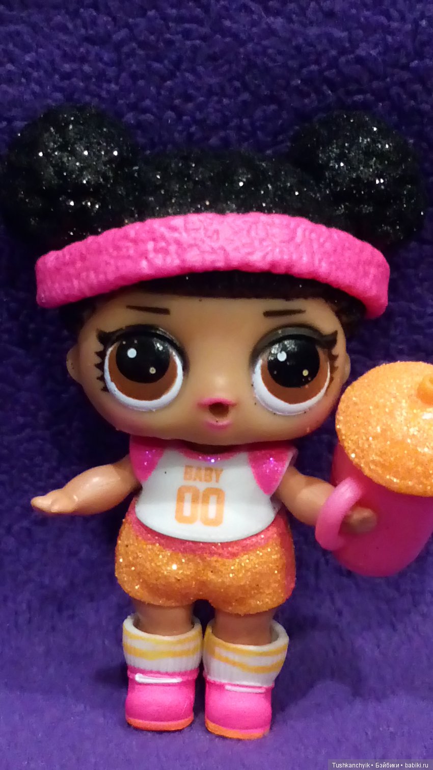 Куколку купили оригинальную из блестящей серии за не очень приятные 1600 рублей. Надо сказать, с продукцией MGA мы с дочкой близко знакомы — Лалалупси-мини много лет пользуются у нее заслуженной любовью и уважением. Теперь о кукле — качество примерно то же, что и у Лалалупси: здесь криво срезано, здесь недокрашено, а тут подоблезло, но в целом куколка качественная и добротная, пахнет хорошо. Блестки с волос в изобилии оставались на руках, пока местами не показалась коричневая краска, ротик от интенсивного засовывания бутылочки (кажется, основное занятие нашей куколки -пить) слегка подоблез. Теперь о хорошем. Такое мимимимишное тельце!!! Пузико, попка с ямочками, ручки-коленочки, невероятно милый ребенок! Головка очень подвижна и позволяет выражать различные эмоции, играя с наклоном. Без туфелек куклу поставить мне не удалось, но в них можно поймать равновесие в очень разнообразных позах, в том числе на одной ноге. В платье хорошо сидит, опираясь на край платья, голышом посадить куколку мне не удалось. Бутылочка держится и на руке и в ротике. За ушками специальные небольшие пазы для ободка, чтобы не сваливался — очень удобно. Выставив ножки в специальное углубление в шаре, куколку можно поставить практически под любым наклоном, очень плотно и устойчиво. Швы на теле небольшие, материал и пластикового тельца и резиновой /виниловой головки приятный наощупь. Платье милое, но имхо простоватое, у тех же Лалалупси бывает куда интереснее.