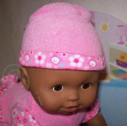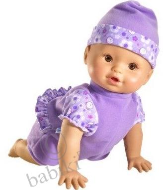 Она поменьше размером — всего 30см, без интерактивных функций. Тело у нее мягкое, наполнено шариками, а ручки-ножки из винила.Есть 1 зуб :). Очень хорошо для самых маленьких деток, т.к. она очень легкая. Ее можно стирать.