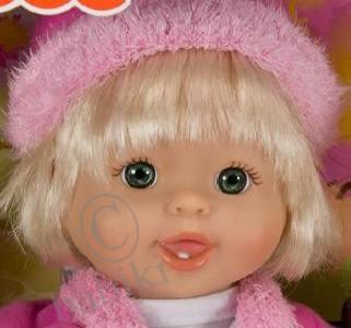 У этой куколки твердое пластмассовое тело, очень приятное личико, размер ее 30см. Выпускаются беленькие и черненькие(этнические), цвет одежды самый разный, волос нет.