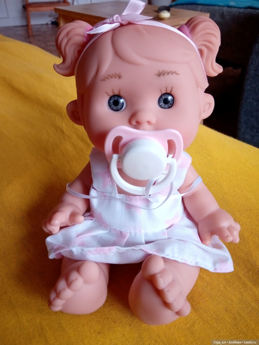 В нашем случае соска функциональна. Почему-то в Детском мире малышки только с молдированными волосиками. Очень понравилась вот эта удивляшка