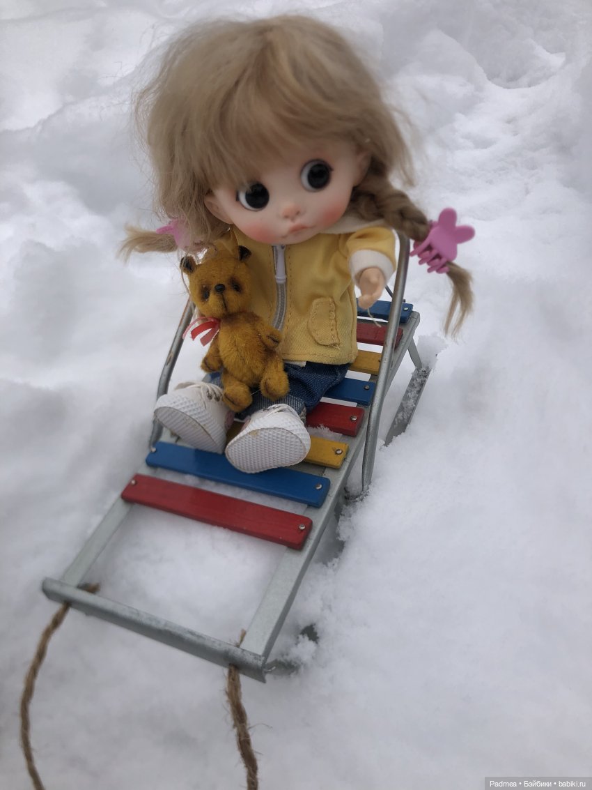 А Мии мои таким чудесам что-то совсем не обрадовались. Они уже к лету готовились, а тут опять зима! А как они готовились? А вот как. Наша Светочка svetlaz создала для моих кукол целый гардероб интересных и красивых вещей, и когда посылочка с нарядами приехала, Мии деловито всё забрали себе. Все-все наряды забрали, и даже те, которые не для них были предназначены. Забрали, устроили большую примерку, и на улицу собрались. А там — зима.