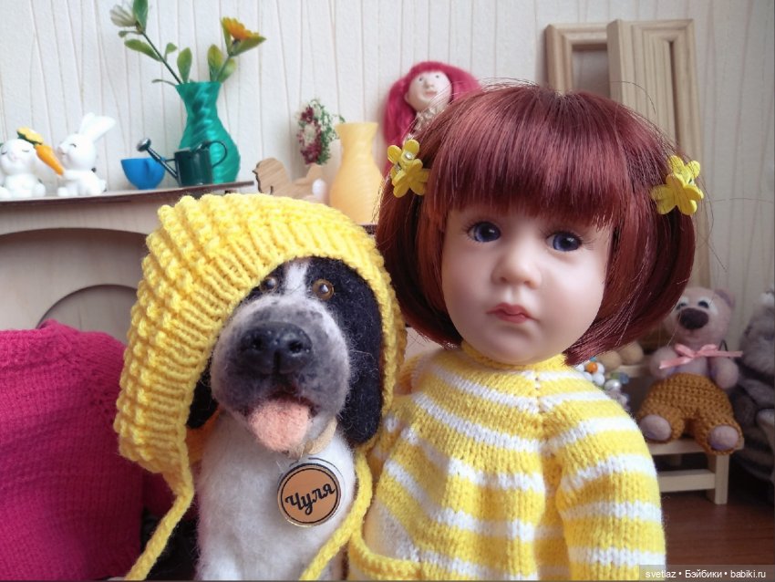 Спасибо преогромное за добрые слова и похвалу нашим нарядам — это все Светочка постаралась! Света так филигранно и изящно вяжет, это что-то нереальное! Неудивительно, что мои Мийки всё себе захватили — они, вообще, жуткие захватчицы