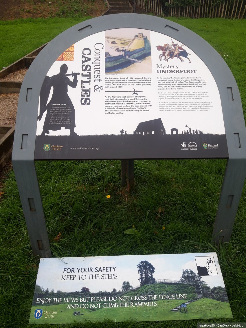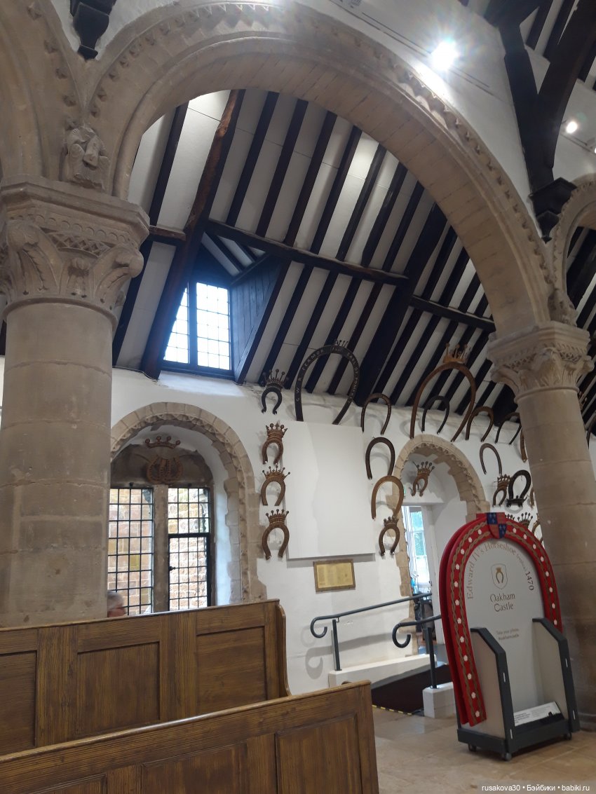 «Замок Оукхем — историческое здание в городе Оукхем, графство Ратленд. Замок известен своей коллекцией массивных подков, а также признан одним из лучших примеров отечественной нормандской архитектуры в Англии.»