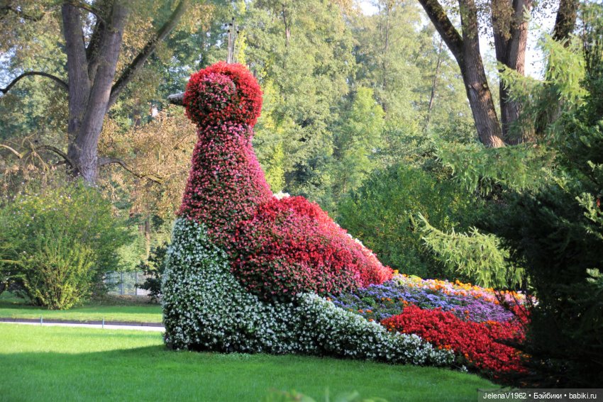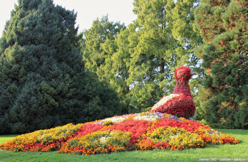 В парке увидели клумбу, в виде большого павлина.