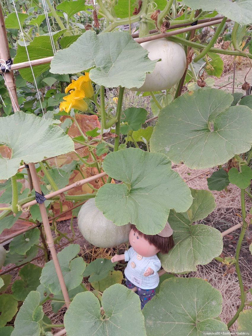 Тыквы, висящие тоже удивили: у меня муж из Казахстана, и он тоже говорит, что тыквы лучше растут подвешенные…