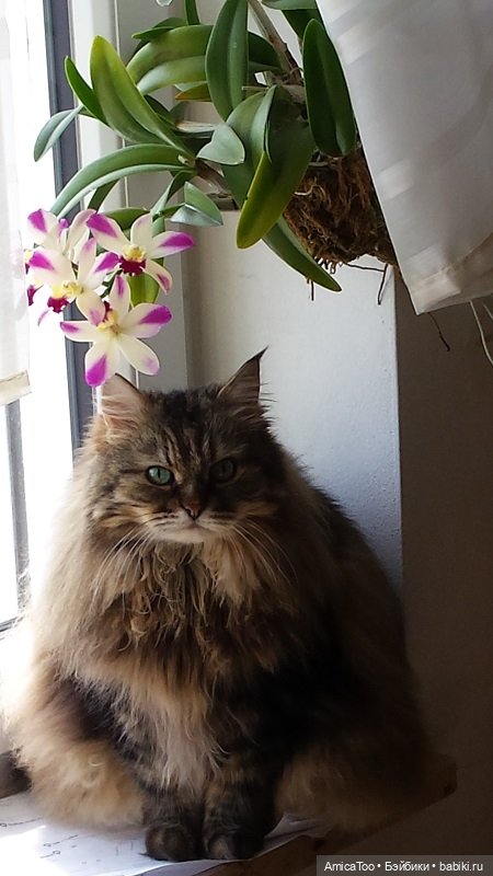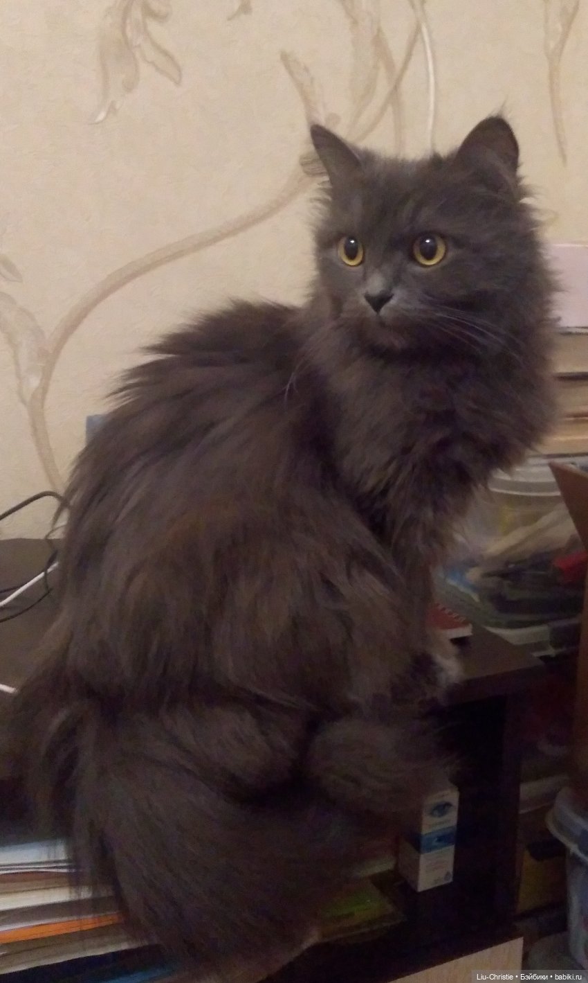 Потом взяли Сёмушку. Ему было полтора месяца. Ребёнок был с блохами и ушным клещом. Все проблемы решили. Вырос добрейшим и ласковым огромным котом. Каждое утро мурлыкал мне и целовался. Вечером сидел у меня на кровати и мурлыкал до тех пор, пока я не засыпала. Только потом уходил спать у меня в ногах. Как же мне его не хватает! Проблемы со здоровьем были серьезные (в 1 год — камни, потом — сердце). Его сердечко не выдержало жары нашего климата.