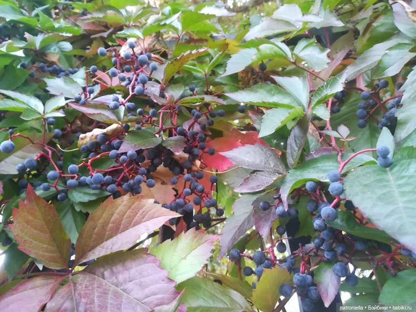 Меня почему-то не отпускает эта разница в виноградах при том, что дача в ближайшем Подмосковье, то есть нет особой разницы с Москвой в плане погоды. И тем не менее, на даче он уже почти облетел. Здесь фото Манюни от 30 сентября, а самый первый кадр, где только виноград, я сделала неделей раньше. К приезду Манюни он уже начал облетать, пришлось подбирать места без проплешин. А около работы он только начинает краснеть, но при этом, в отличие от моего, весь в ягодах. Чудеса какие-то.