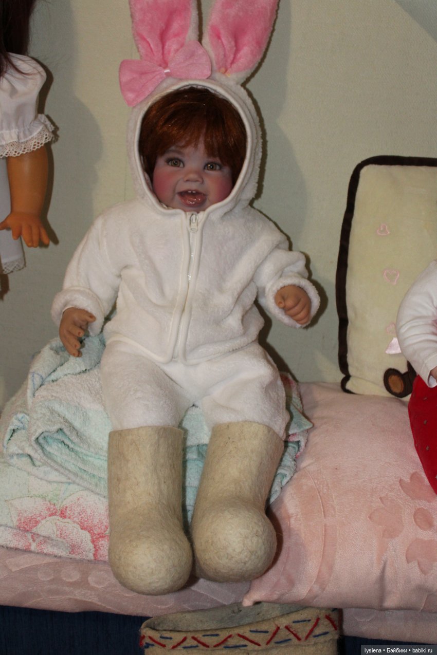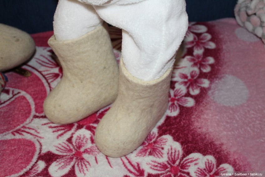 Навалялись очередные валенки на Мию, девочка миляга, люблю с ней играть ))ножка у Мии не простая, валенки надеваются с трудом, пришлось расширить голенище…