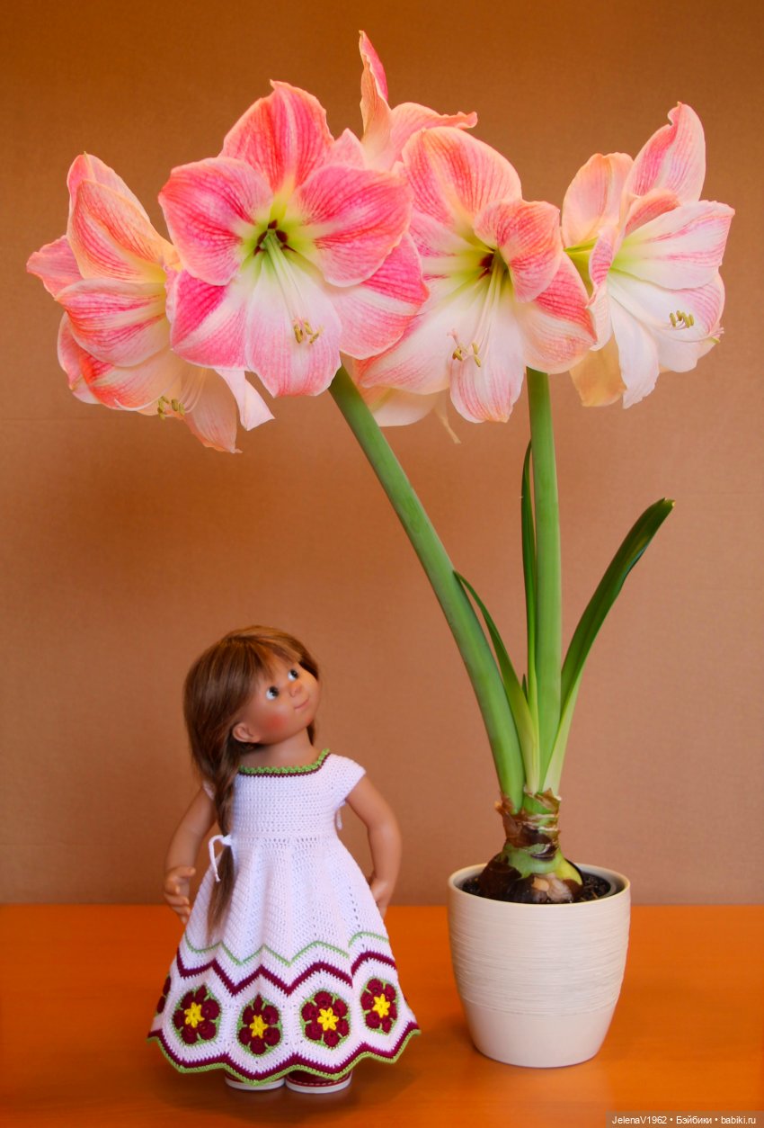 Цветок фантастический, просто из луковицы вырастают толстые стебли и на них распускаются огромные цветы. Наблюдаю за всеми превращениями и не понимаю, откуда всё это берётся.