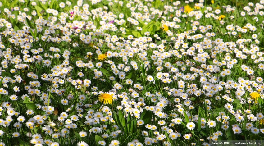 Ромашки у нас только собираются цвести, это маленькие маргаритки в одуванчиках.